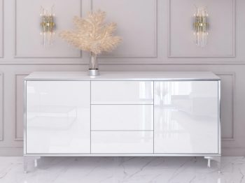 Kommode Monako 154cm Weiß Hochglanz mit silbernen Akzenten