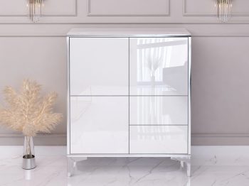 Kommode Monako 80cm Weiß Hochglanz mit silbernen Akzenten