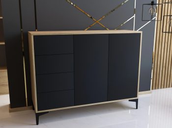 Kommode Monako 118cm Schwarz Matt mit Eiche Craft Gold