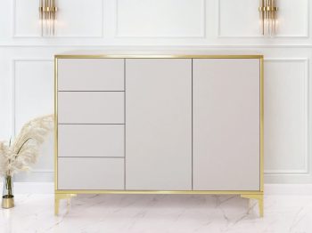 Kommode Monako 118cm Kaschmir Matt mit goldenen Akzenten