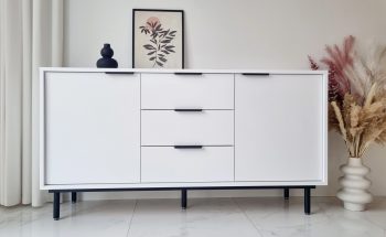 Kommode Cala 154cm Weiß Matt mit schwarzen Griffen