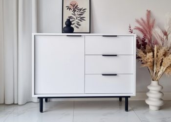 Kommode Cala 104cm Weiß Matt mit schwarzen Griffen