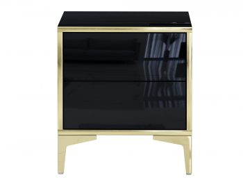 Nachttisch Monako 45 cm Schwarz Hochglanz mit goldenen Akzenten