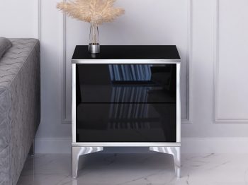 Nachttisch Monako 45cm Schwarz Hochglanz mit silbernen Akzenten