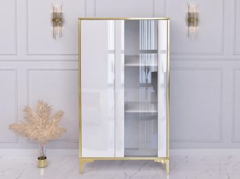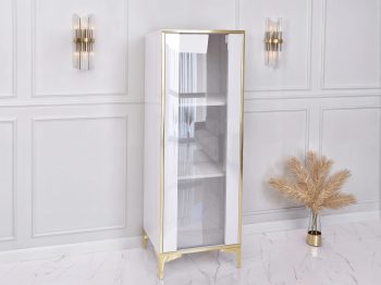 Vitrine Monako 50cm Weiß Hochglanz mit goldenen Akzenten