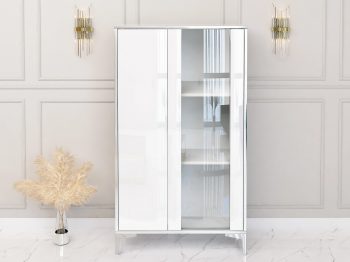 Vitrine Monako 50cm Weiß Hochglanz mit silbernen Akzenten
