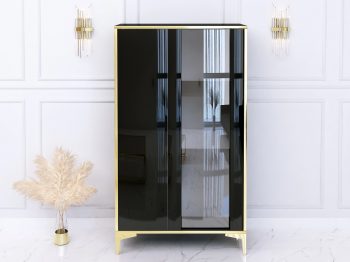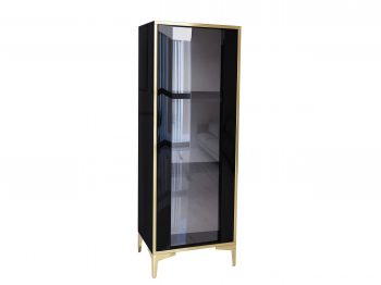 Vitrine Monako 80cm Schwarz Hochglanz mit goldenen Akzenten