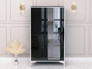 Vitrine Monako 50cm Schwarz Hochglanz mit silbernen Akzenten