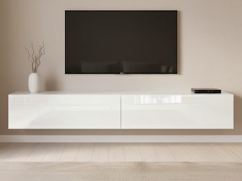 Gefertigt aus stabilem MDF mit Laminatoberfläche überzeugt das Möbelstück durch hohe Qualität und Langlebigkeit. Die Fronten in Weiß Hochglanz lassen den Raum heller wirken, während die schwarzen Elemente für einen spannenden Kontrast sorgen. Die Türen und Schubladen sind mit einem komfortablen Push-to-Open-System ausgestattet und lassen sich mühelos öffnen. Dank seiner Konstruktion kann das Lowboard stehend, auf Sockel oder auch hängend montiert werden – je nach gewünschtem Look.